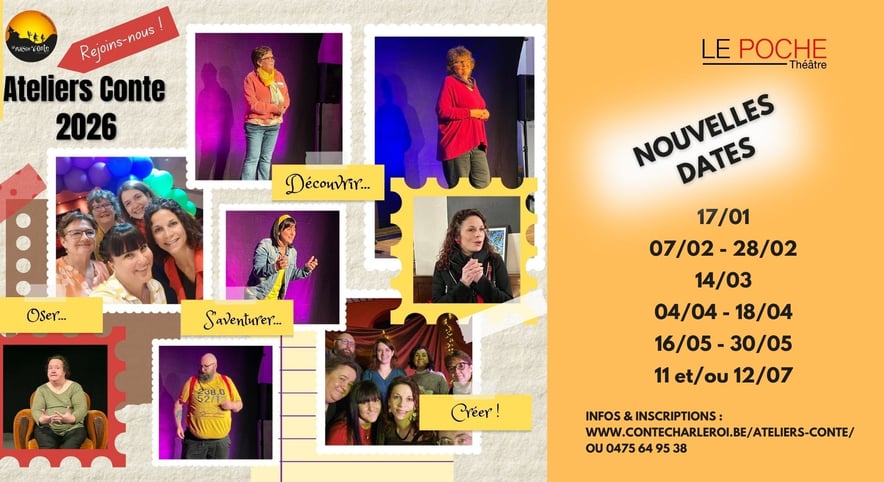 Niveau débutant et initiation : découvrir l'univers du conte, ses codes, son répertoire, son univers, en compagnie de conteurs chevronnés de la Maison du Conte de Charleroi : Pascale Baeyens, Jacky Druaux, Sylvianne Piéfort, Yann Lejeune, Christophe Maison, Raphaëlle Bouillon.