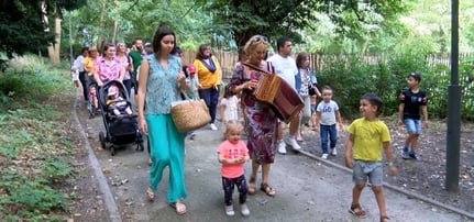 Au mois de juillet, enfants et parents se sont lancés dans une balade contée en histoires, chants et musique au travers du parc de la Posterie à Courcelles.